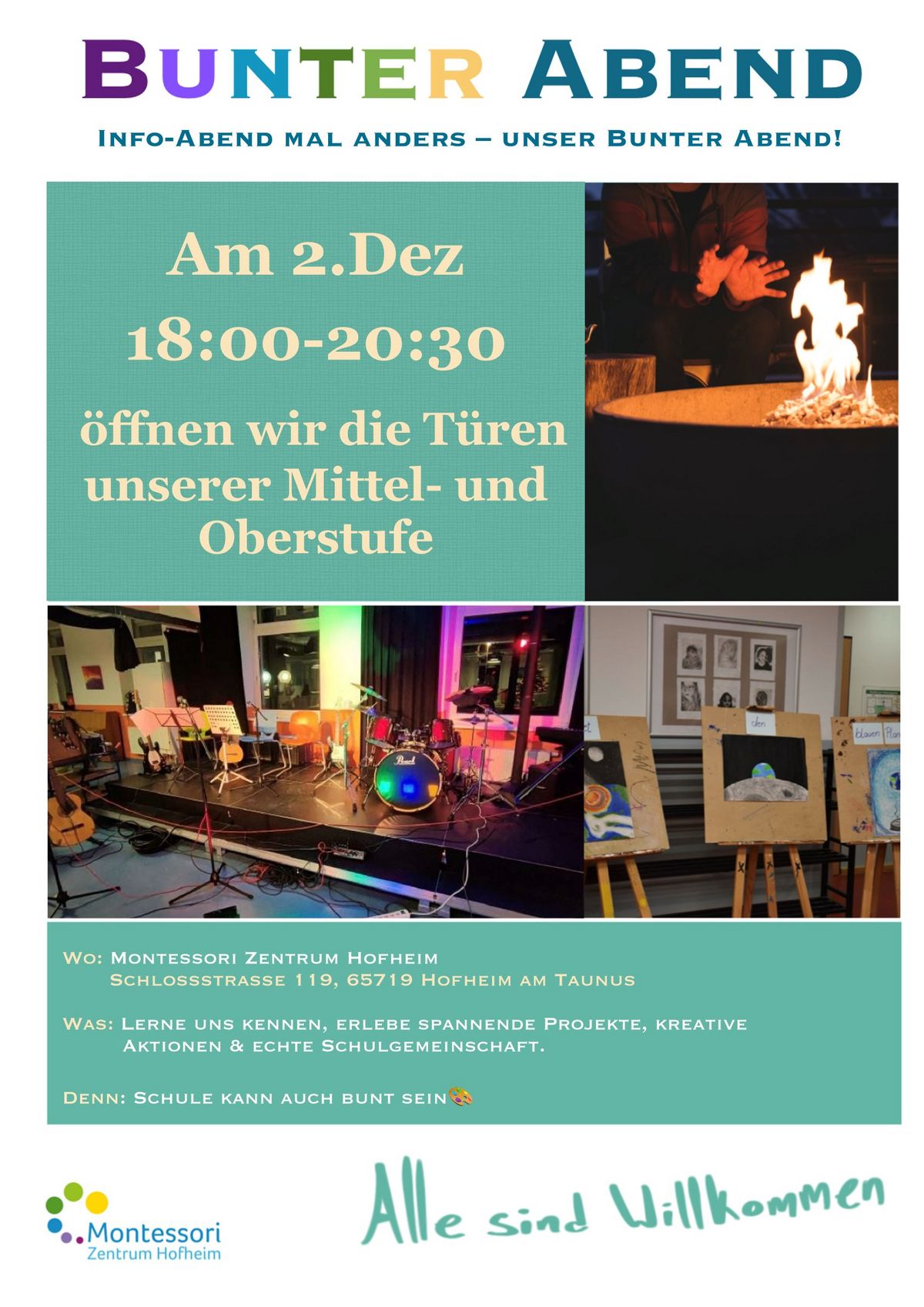 Das Montessori-Zentrum Hofheim ist ein gemeinnütziger Verein, der aus einer Elterninitiative entstanden ist. Heute ist der Verein Träger mehrerer Bildungseinrichtungen am Standort Hofheim. Der Verein betreibt ein Kinderhaus mit zwei Gruppen für Kinder von 11 Monaten bis 3 Jahren und zwei Gruppen für Kinder von 3 Jahren bis zum Schuleintritt und eine staatlich anerkannte Schule mit ca. 300 Schülerinnen und Schülern mit 6-jähriger Grundschule ab Eingangsstufe, einer integrierten Gesamtschule, die zum staatlichen Haupt- oder Realschulabschluss führt, und einer gymnasialen Oberstufe, die zum Zentralabitur führt.