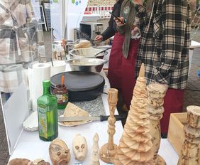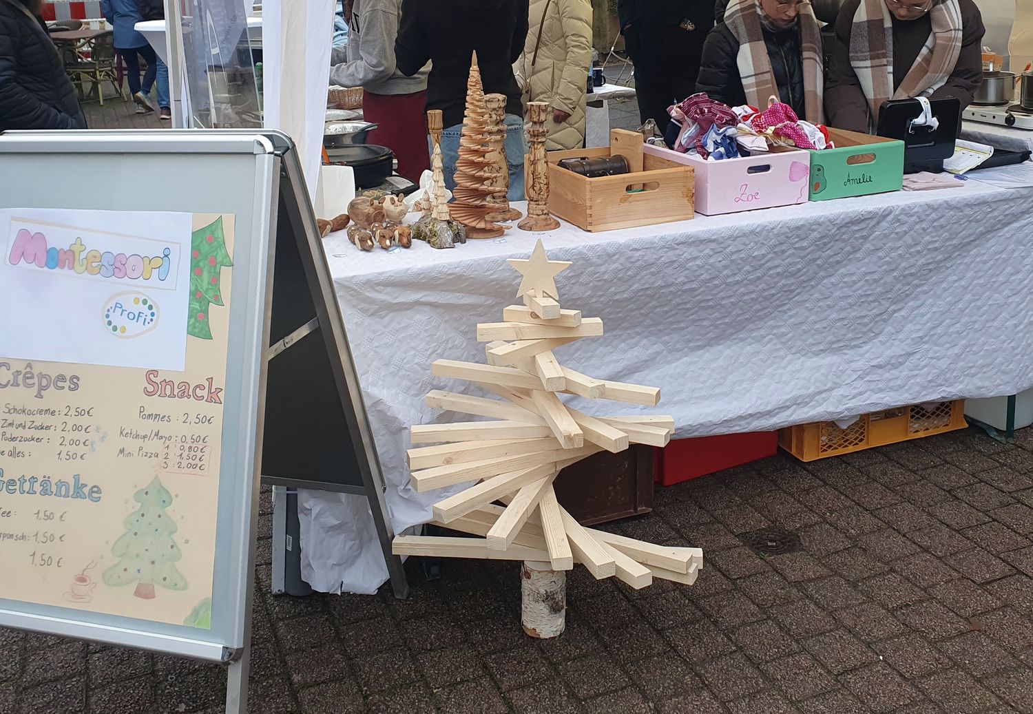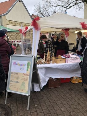 Mit großem Engagement und sichtbarer Freude haben die Freiwilligen in diesem Jahr wieder am „Anderen Weihnachtsmarkt“ teilgenommen. Auch wenn sie von Eltern und Lehrkräften unterstützt wurden, so verkauften die Schülerinnen und Schüler am Marktstand nicht nur Crêpes, Pommes und Punsch, sondern führten auch Gespräche mit Besucherinnen und Besuchern, erklärten Herstellungsprozesse und organisierten den Verkauf eigenständig.