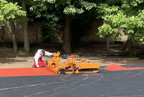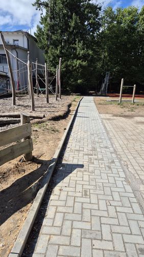 So startete die Einrichtung der Baustelle kurz vor den diesjährigen Sommerferien - der Abbau des alten Sportfeldes und die Neuerrichtung erfolgte in den ersten drei-vier Wochen und der Bau des barrierefreien Weges in den letzten Sommerferienwochen. Nun wurden auch die letzten Restarbeiten erledigt.