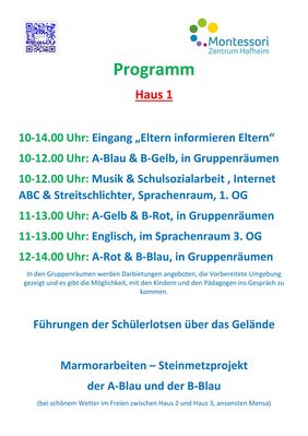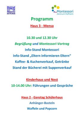 10.30 und 12.30 Uhr Begrüßung und Montessori-Vortrag